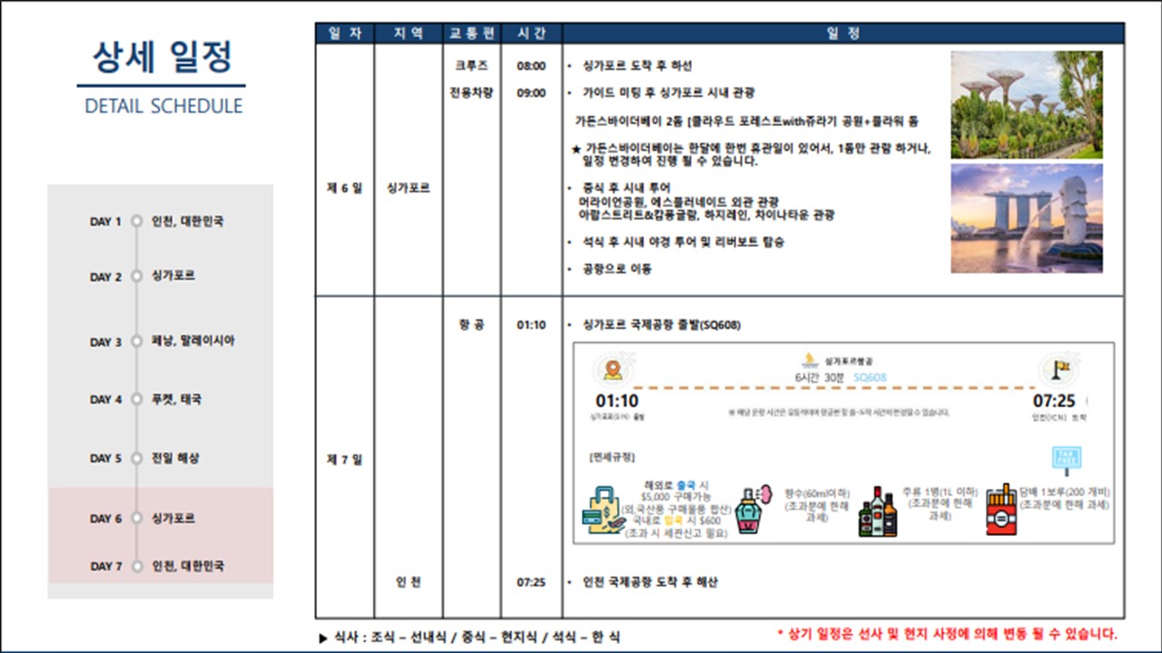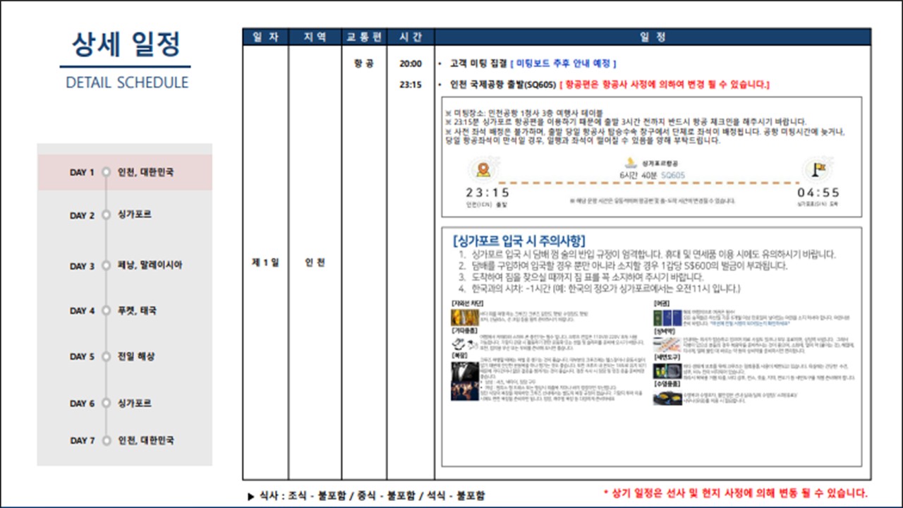 SQ605총 6시간 40분 소요직항 |